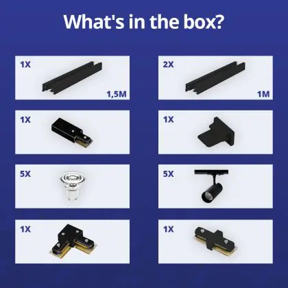 Manufacturer Name | Complete L shaped 1-Phase Track Set Black incl. 5x Spot fixture + GU10 2700K 3W Dim – 1,5 x 2 meter | |