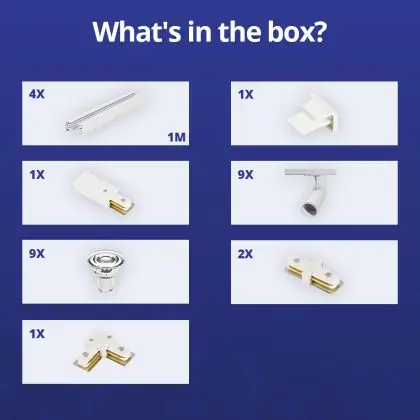 | Manufacturer Name | Complete L shaped 1-Phase Track Set White incl. 9x Spot fixture + GU10 2700K 3W Dim – 2 x 2 meter i | |