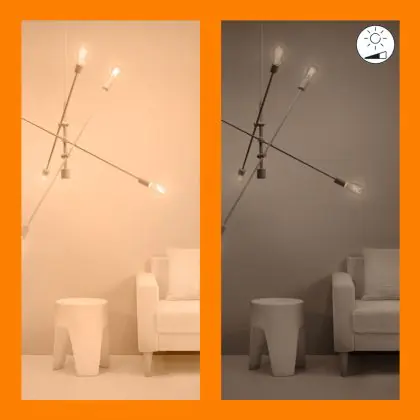 4. Dim to warm: Dimming makes the light warmer (more yellow). The more you dim, the warmer the colour.