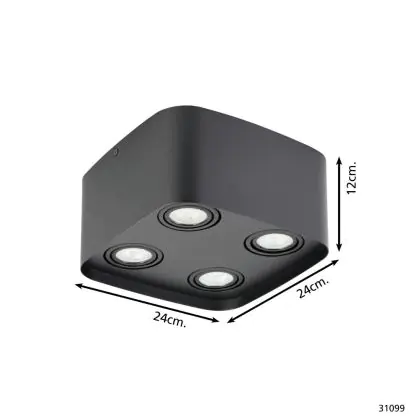 Eglo Ceiling Spot Arenzano Steel Black 18.8W 1380lm - 830 Warm White | Dimmable - Suitable for GU10