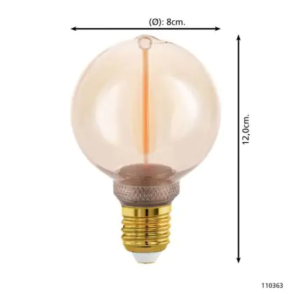 Eglo LED Globe E27 Filament Amber 2W 100lm - 818 Extra Warm White | Dimmable - Replaces 15W