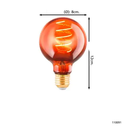 Eglo LED Globe E27 Filament Amber 4W 30lm - 820 Extra Warm White | Dimmable - Replaces 15W
