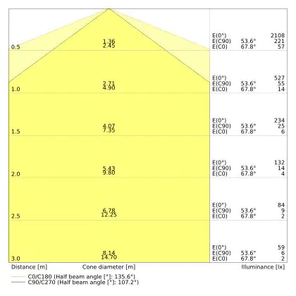 The colour code is a combination of colour rendering (CRI) and light colour (Kelvin). The first number indicates the colour rendering (1 = very poor colour rendering, 9 = maximum colour fastness). The second and third number contains the light colour. Example: the colour code 830 consists of good colour rendering (8) and warm white light (3000K). |