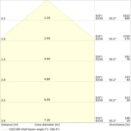 The colour code is a combination of colour rendering (CRI) and light colour (Kelvin). The first number indicates the colour rendering (1 = very poor colour rendering, 9 = maximum colour fastness). The second and third number contains the light colour. Example: the colour code 830 consists of good colour rendering (8) and warm white light (3000K). |