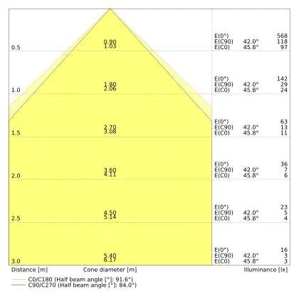 The number of lumens (lm) is the light output of a light source. The higher the number of lumens, the more light the light source emits. The wattage and the number of lumens are not connected to each other. An LED lamp with a low wattage can have a higher number of lumens than a conventional lamp with a high wattage.                                             | Luminous Flux (Lumen) | 3120 |