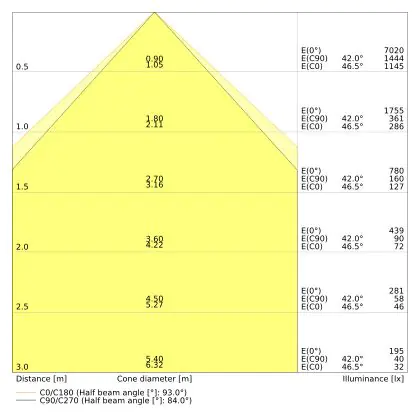 The number of lumens (lm) is the light output of a light source. The higher the number of lumens, the more light the light source emits. The wattage and the number of lumens are not connected to each other. An LED lamp with a low wattage can have a higher number of lumens than a conventional lamp with a high wattage.                                             | Luminous Flux (Lumen) | 3630 |