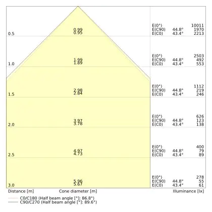 The colour code is a combination of colour rendering (CRI) and light colour (Kelvin). The first number indicates the colour rendering (1 = very poor colour rendering, 9 = maximum colour fastness). The second and third number contains the light colour. Example: the colour code 830 consists of good colour rendering (8) and warm white light (3000K). |