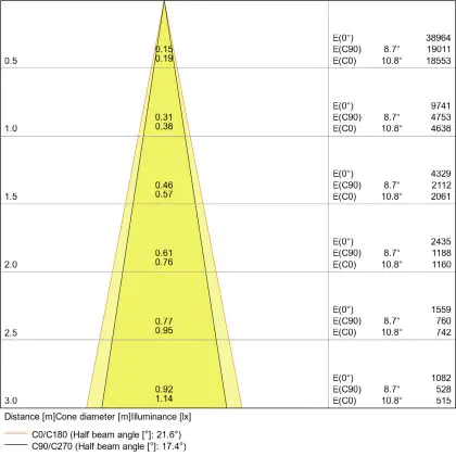 The colour code is a combination of colour rendering (CRI) and light colour (Kelvin). The first number indicates the colour rendering (1 = very poor colour rendering, 9 = maximum colour fastness). The second and third number contains the light colour. Example: the colour code 830 consists of good colour rendering (8) and warm white light (3000K). |
