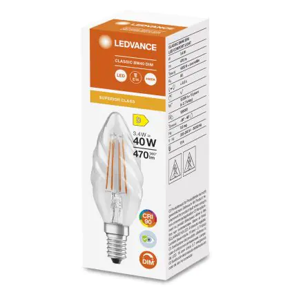 Ledvance Superior Classic LED E14 Filament Clear 3.4W 470lm - 940 Cool White | Dimmable - Best Colour Rendering