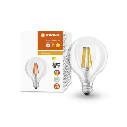 Ledvance Superior Classic LED E27 Globe Filament Clear 95mm 11W 1521lm - 927 Extra Warm White | Best Colour Rendering