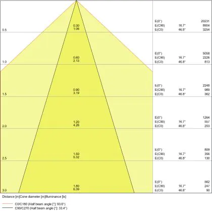 The Luminous Efficacy (lm/W) indicates how efficiently a light source uses energy. We divide the number of lumens by the wattage. The higher the number, the more efficient a product is in terms of energy consumption. LED lighting has a considerably higher lumen/Watt ratio than conventional lighting.
