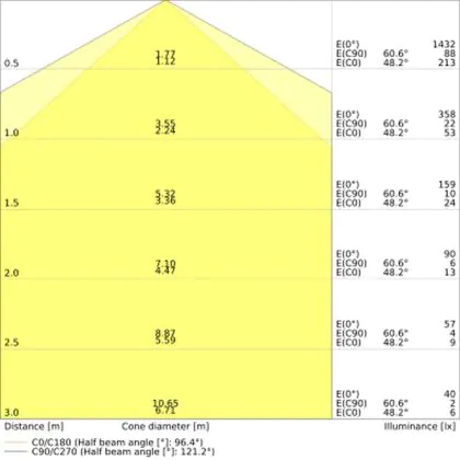 The Luminous Efficacy (lm/W) indicates how efficiently a light source uses energy. We divide the number of lumens by the wattage. The higher the number, the more efficient a product is in terms of energy consumption. LED lighting has a considerably higher lumen/Watt ratio than conventional lighting.