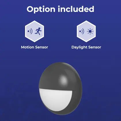 Noxion LED Bulkhead Pro V2 White 12/16/20W 2400lm - 830-840-865 CCT | 325mm - IP65 - Motion and Light Sensor + Eyelid Ring Black