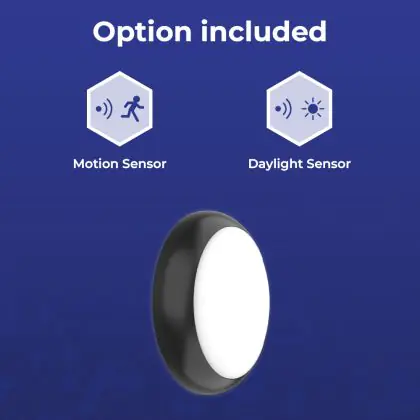 Noxion LED Bulkhead Pro V2 White 12/16/20W 2400lm - 830-840-865 CCT | 325mm - IP65 - Motion and Light Sensor + Ring Black