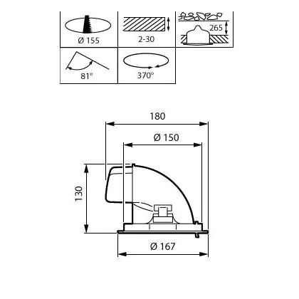 | Cut out (mm) | 150 | |