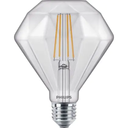 Philips Vintage Classic LED Globe E27 Diamond Filament Clear 95mm 5W 500lm - 827 Extra Warm White | Dimmable - Replaces 40W